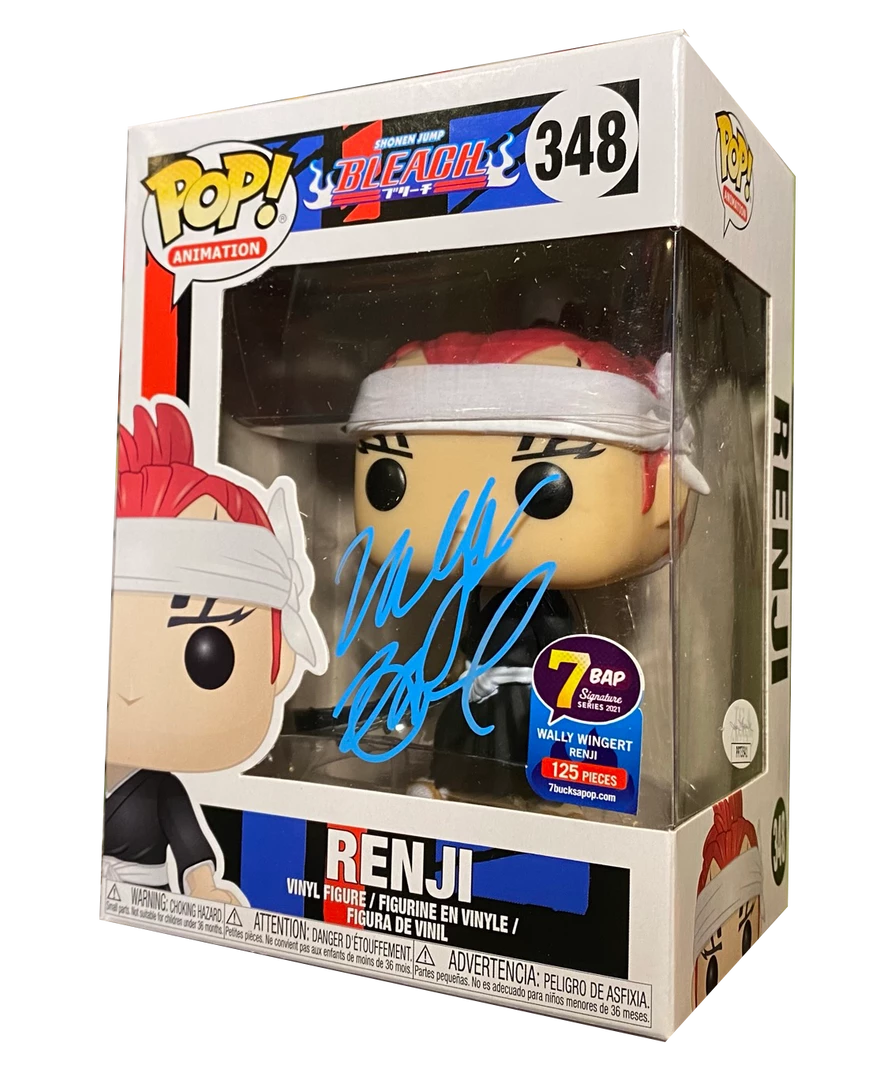 From the Bleach anime and comic series comes this Renji Pop! Vinyl Figure! This is a limited edition variant of the figure that has been signed by voice actor Wally Wingert in blue ink and has been JSA Authenticated. Limited one of 125 pieces.