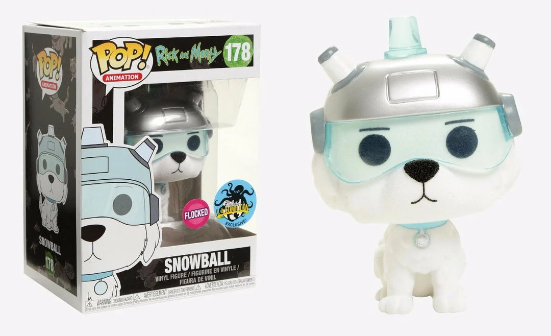 From the Rick & Morty television show comes this Exclusive flocked Snowball Pop! Vinyl Figure from Funko! A flocked figure has a coating on it that feels like fur. This was a limited-edition, exclusive release from Stan Lee’s Los Angeles Comic Con.