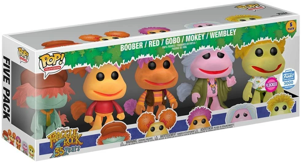 From the Fraggle Rock temevision series comes this special flocked 5-pack of Boober, Red, Gobo, Mokey, and Wembley Pop! Vinyl Figures! This is a limited to 3000 pieces worldwide exclusive figure set.