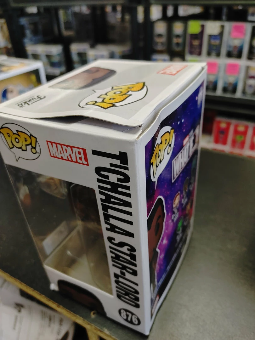 From the Disney+ What If? series comes this T’Challa Star-Lord (unmasked) Pop! Vinyl Figure from Funko! This is a limited edition exclusive figure.