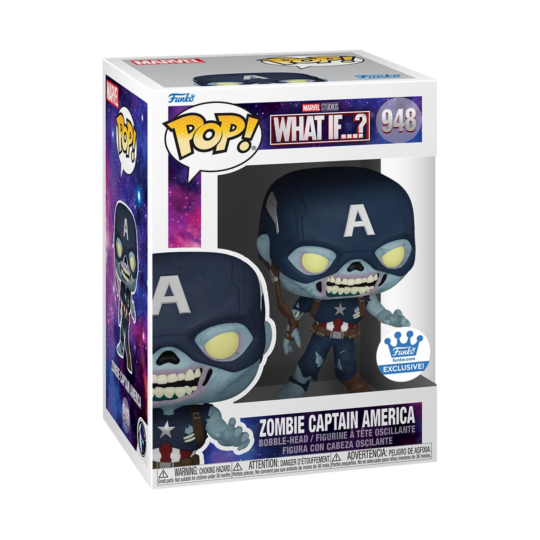 From the Disney+ What If? series comes this Zombie Captain America (reaching w/o shield) Pop! Vinyl Figure from Funko! This is a limited edition exclusive figure.