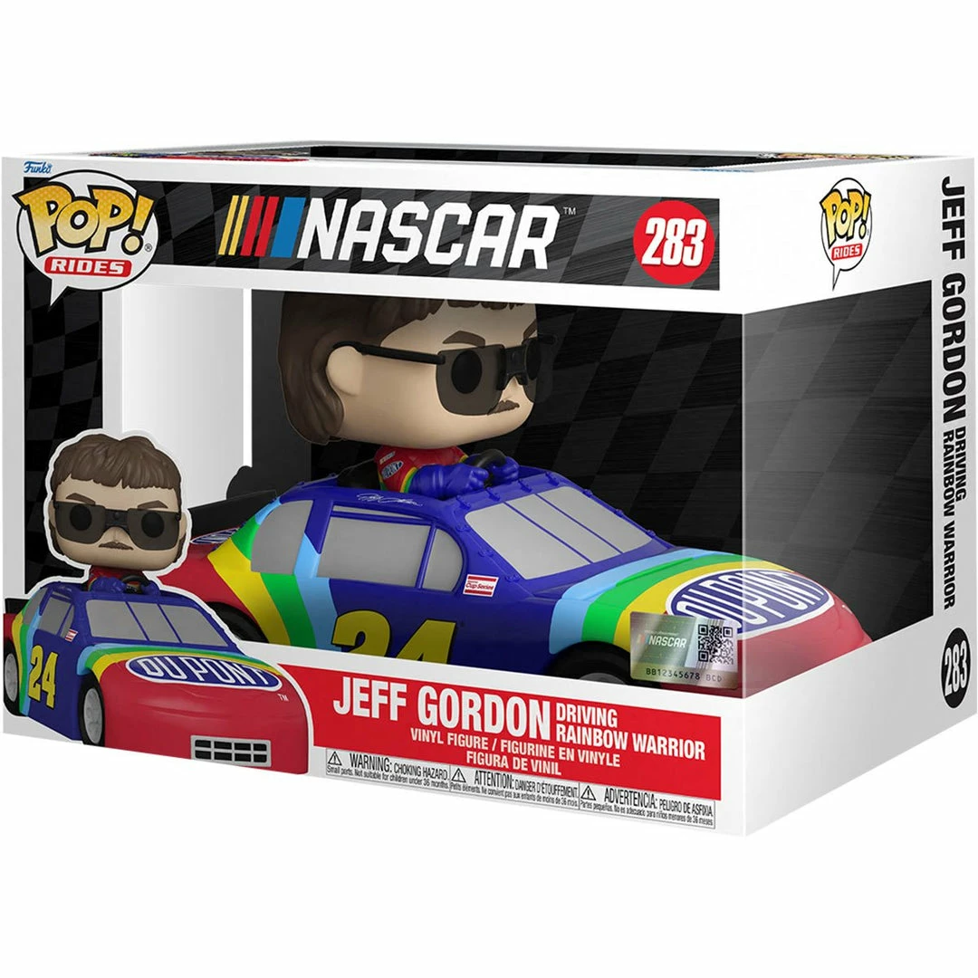 From the NASCAR line comes this Jeff Gordon (Driving Rainbow Warrior) Pop! Vinyl Ride from Funko!
