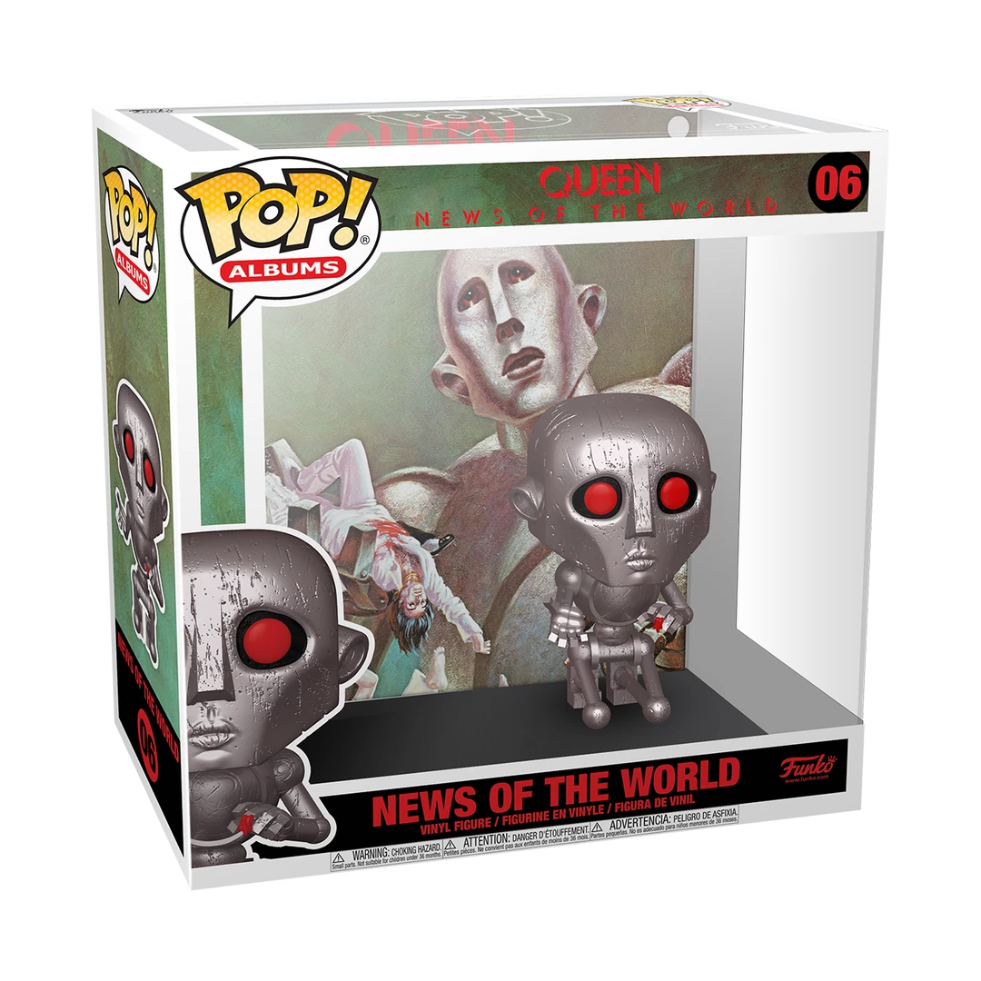 From the world of music comes this Queen News of the World POP! Vinyl Figure from Funko!  This figure comes in a custom case with the album cover in the background.