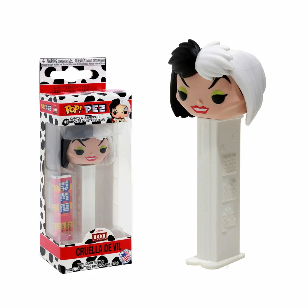 From 101 Dalmatians comes this Cruella De Vil POP! Pez from Funko! Comes with one package of Pez candy.Â