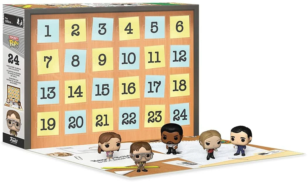 Reveal pocket Pop! The Office characters hidden behind each door with this Advent Calendar. There’s Jim, Dwight, Michael, and many more to discover! Each Pocket Pop! The Office figure stands approximately 1 ½ inches tall.