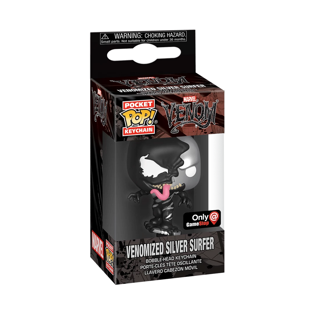 From the Marvel Venom series comes this Venomized Silver Surfer Pocket Pop! Keychain! This is a limited edition exclusive keychain.