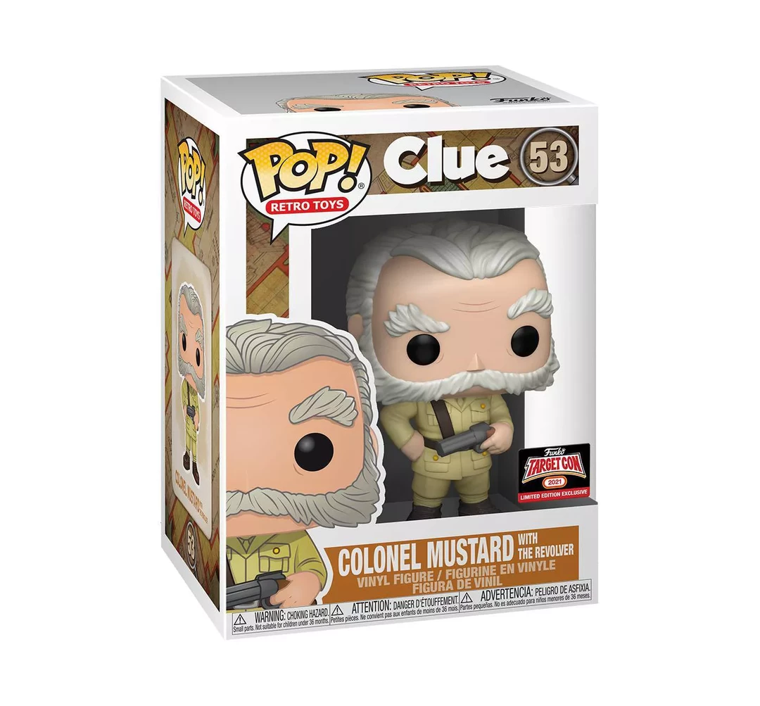 From the classic retro toys from the 80’s game CLUE comes this Colonel Mustard (/w The Revolver) Pop! Vinyl Figure! This is a limited edition exclusive figure.