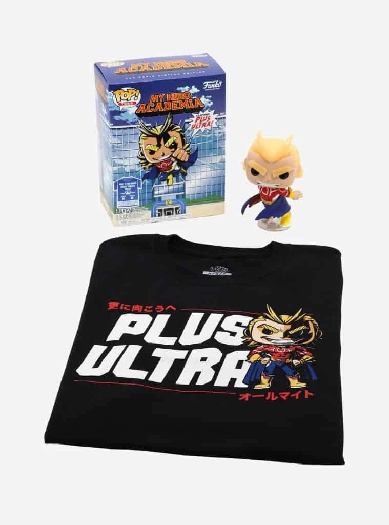 From the My Hero Academia anime comes this Glow-In-The-Dark Silver Age All Might POP! Vinyl Figure from Funko! It comes with a T-shirt and is an exclusive limited edition figure.
