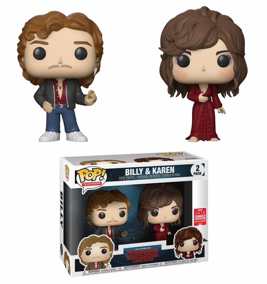 From the Stranger Things Netflix series comes this Billy & Karen 2-Pack of Pop! Vinyl Figures! These are a San Diego Comic Con 2018 exclusive, limited edition figure set.