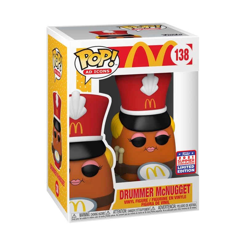 From McDonald’s comes this Drummer McNugget in a Pop! Vinyl Figure by Funko! This is a San Diego Comic Con/Funkon 2021 limited edition shared exclusive figure.