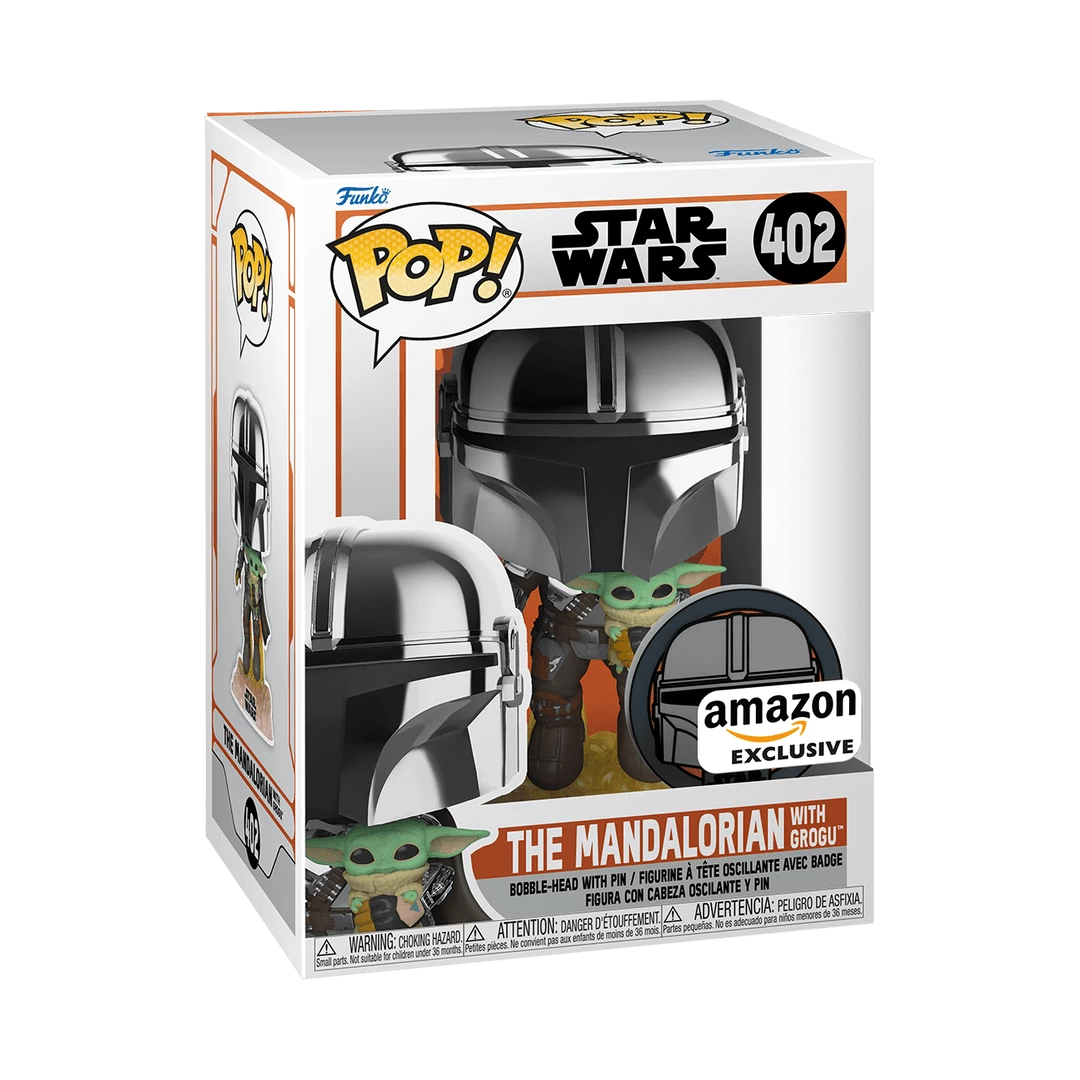 From the Star Wars: The Mandalorian comes The Mandalorian holding Grogu (Chrome) as a Pop! Vinyl Figure from Funko! This is a limited edition exclusive figure and comes with a commemorative pin.