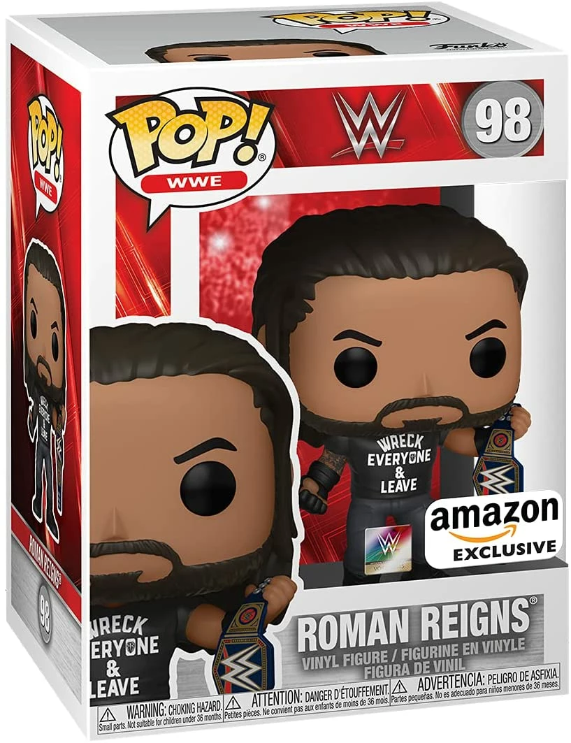From the WWE comes this Roman Reigns (Wreck Everyone & Leave) /w Universal Title Pop! Vinyl Figure from Funko! This is a limited edition exclusive figure.